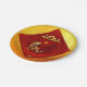 Simple golden Tiger paper-cut into a decorated circle with Chinese lantern and golden Fu ideogram (meaning Luck), blossoms and Chinese greeting into small circles under the tiger + "Year of the Tiger" in handwritting style + Fu ideograms as background onto a golden textured paper (image printed). Design on party paper plate for Chinese New Year of the Tiger 2022. Matching greeting card, square flat card and more...