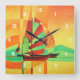 Chinese Junks Sail to Shore In Cubism Geo Art Square Wall Clock