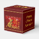 Chinese lanterns with fireworks as background with golden paper-cut of a cute rat + large golden 2020, golden Year of the Rat, greeting "Happy New year" in Chinese and golden rat ideogram. Design on classic cube favour box with dark red background + Happy Chinese new Year (to customise if you want). Matching greeting card, postcard, invitations and more... Perfect for a Happy Chinese New Year of the Rat 2020.