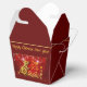 Chinese lanterns with fireworks as background with golden paper-cut of a cute rat + large golden 2020, golden Year of the Rat, greeting "Happy New year" in Chinese and golden rat ideogram. Design on take-out favour box with dark red background + Happy Chinese new Year (to customise if you want). Matching greeting card, postcard, invitations and more... Perfect for a Happy Chinese New Year of the Rat 2020.
