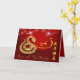 Chinese lanterns with fireworks as background for golden paper-cut of a snake + large golden 2025 (original hand writing), golden "Year of the Snake", greeting "Happy New Tear" in Chinese in front and same small golden snake + Happy New Year in back. Design on horizontal standard greeting card with dark red background + the same background inside with texts to customise. Matching holiday postcard, invitations and more... Perfect for a joyful Chinese New Year of the Snake 2025. --------- "The snake (蛇) is the sixth of the twelve-year cycle of animals which appear in the Chinese zodiac related to the Chinese calendar.