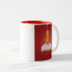 Chinese Asian Calligraphy Text Longevity Birthday Symbol with Fruits of Good Health on a Auspicious Red Festive Background Illustration Drawing Mug