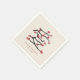 A unique kanji writing of the word 'ai' ('love') constructed from oriental red cherry blossoms / sakura flowers with black branches on an ivory / beige / cream background wedding shower / engagement party paper napkin.
