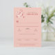 A unique kanji writing of the word 'ai' ('love') constructed from oriental red cherry blossoms / sakura flowers with white branches on soft pink background wedding shower / engagement party rsvp / reply / response card. An elegant and romantic asian themed bridal, engagement or wedding design which is modern and whimsical.