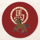Chinese Lunar Year of the Horse with Golden Zodiac Round Paper Coaster