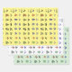 Chinese characters commonly seen on Mahjong game tiles - three background colours (yellow, white, green).