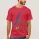 I give wanted to give this a 4 instead of a 5 because these Basic DARK T0shirts run unexpectedly SLIM or Narrow. Which is great if you do not have a potbelly, but I have a paunch. It isn't the shirt's fault that I've got a beer belly. The design and shirt itself is a quality cotton shirt. The color is more of a deep purple, but still a very pretty color. The Basic DARK T-shirts run a bit SLIMMER than the Basic Ts. The neck is a fraction narrower (or seems to be narrower) also. I'm a paunchy middle-aged woman and my neck is 12 inches (31cm) thick and the neckline fell about the same as in the photo of the man, and I had the desire to tug it a bit. So if you're a thick necked man or like loose shirts, be aware these are slimmer shirts. Once I get rid of my lockdown paunch it'll look great. The shirt washed well in cold water with no apparent bleeding. We don't have a dryer, so it hung dry. Did not shrink. Love the colors and the design. The design looks smaller on my shirt than it does on the model on-line. But still, it looks good on the shirt. The printing looks as it does on the model, just the size seems fractionally smaller. Washed garment in cold water, hung dry and design appeared unaffected.