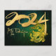"Golden" Dragon paper-cut with large 2024 (original handwriting) + "Year of the Dragon" (original handwriting) into a green background for 2024. Design on horizontal holiday postcard with same background inside the card (pastel tone). Matching greeting card, craft products and more soon...  Perfect for Chinese New Year of the Dragon or Birthday (people born in Dragon Year).