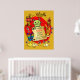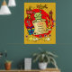 Celebrate the Chinese New Year with this bold, cute cartoon design with a dragon holding a scroll. Bright gold and red with a fish carp, flower, and more.