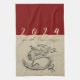 Original wash painting n°1 of a Dragon by RB + golden "Year of the Dragon" + large 2024 to customise if you need. Design on kitchen towel with dark red colour background. You can easily change Year (font, colour, size and position) and background colour by clicking the customise button. Available with other paper-cuts. Perfect for Chinese and Vietnamese New Year of the Dragon 2024 or birthday (people born in Dragon Year).
