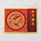 An elegant visual of a golden horse with blossoms into a circle (inspired by traditional Chinese paper-cut) with red circle overlay a red and yellow traditional Asian pattern + graphic "HAPPY NEW YEAR" in Chinese and English and old Chinese calligraphy for "horse" on the right on gradiant red colour band. On the back are the same gradiant background (on the left) for texts to personalise: your message and return address + golden textured paper (image printed) on the right. Design on horizontal holiday postcard. You can easily personalise this Lunar New Year postcard by customising the greeting on the back or delete for your handwritten note, type in your return address. Matching real foil holiday postcard.