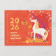 This Chinese Lunar Year 2026 postcard features a graceful horse surrounded by delicate sakura flowers, glowing in golden accents. The elegant composition symbolises rebirth, beauty, and good fortune, while the deep red tones honour Chinese New Year traditions. A timeless Year of the Horse greeting card, designed to connect Asian communities and spread festive cheer.