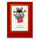 Chinese New Year of the Dog, paper greeting card for grandparents. Illustration of a grey dog who is very excited and cheering on the arrival of the new year. Image is framed in red with faux gold accents. Clip art elements courtesy:Openclipart. Art, image, and verse copyright © Shoaff Ballanger Studios.