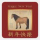 Customisable square sticker with Mongolian Horse (Artwork dating from the eighteenth Century). Perfect for Chinese New Year of The Horse with greeting in Chinese. -- "The Horse (馬 午) is one of the 12-year cycle of animals which appear in the Chinese zodiac related to the Chinese calendar. There is a long tradition of the horse in Chinese mythology. Certain characteristics of the Horse nature are supposed to be typical of or to be associated with either a year of the Horse and its events, or in regard to the personality of someone born in such a year (...) Years and the Five Elements: People born within these date ranges can be said to have been born in the "Year of the Horse", while also bearing the following elemental sign: