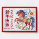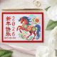 Bold, graphic red foil “Happy New Year” typography in both Chinese and English and a stunning visual of a graphic multi color cut paper horse, flowers and cloud overlay a traditional Asian light gray circle pattern and red border on the front. On the back flap, a cloud and star visual, along with customizable copy, overlay red. Faux gold foil lines the inside of the envelope. Feel the warmth and joy of the holiday season whenever you give this stylish, yet modern, personalized 2026 Chinese Lunar New Year of the Horse Hong Bao red envelope. Make sure someone special receives this lucky envelope!
