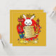 Celebrate the Chinese New Year with this bold, cute cartoon design with a rabbit holding a scroll. Bright gold and red with a fish carp, flower, and more.