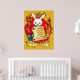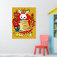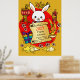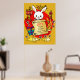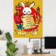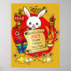 Celebrate the Chinese New Year with this bold, cute cartoon design with a rabbit holding a scroll. Bright gold and red with a fish carp, flower, and more.