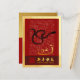 Original wash painting of a snake by RB. Design on vertical holiday postcard with various Chinese calligraphy of Fu (meaning Luck) ideogram into a red background + old Chinese calligraphy for Snake + Wishes in Chinese and English framed with golden textured paper (image printed) + texts to personalise in the back of the postcard. Available in horizontal position.