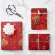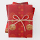 Design n°1: Chinese traditional pattern with golden tiger head paper-cut and golden "Year of The Tiger" in handwritting style.Design n°2 with large red peony and golden tiger par-cut. Design n°3: repeating square pattern with Fu ideogram into Chinese red lantern and Tiger paper-cut. Design on wrapping paper flat sheet set of 3.