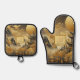 Chinese Painting Faux Golden Dripping Monogrammed Oven Mitt & Pot Holder Set