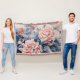 Classical Chinese style pink and blue peony art on a throw blanket.