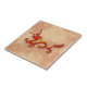 This ceramic trivet or tile features a red and golden dragon. The dragon has a thin curved body with yellow gold spines along its back and tail. It has sharp claws at the end of its feet, horns and sharp teeth. The dragon commemorates the Chinese New Year, the Year of the Dragon in 2012, but an attractive gift at any time during the year.