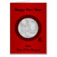 Wish family and friends a Happy Chinese New Year for the beginning of the Year of the Dragon with this card featuring a black Chinese symbol (or Japanese kanji) for dragon surrounded by an ornate black frame on a red background. All the text is fully customisable for your own special New Year message.