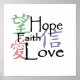 Chinese symbols for hope, love and faith on poster