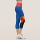 Large Chinese Tiger black ideogram + black illustration of a tiger into an orange circle. + 2022 to customise if you need. You can easily change number (font colour, size and position) and background colour by clicking the customise button. Design on High Waisted Capris leggings with blue and orange colours background. Perfect for Chinese New Year of the Tiger 2022 or Birthday (people born in Tiger Year). -----------------