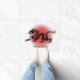 This is an illustration of a traditional chinese dragon in black on a red background.