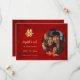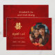 This Chinese wedding photo save the date card features a golden artistic double happiness symbol on a shimmering red floral background. Save the date text in an elegant script. Matching Chinese wedding products available.