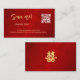 This modern elegant Chinese wedding scan me card features an artistic gold double happiness on a shimmering ruby red background. Qr code card for details on your wedding website and rsvp online.