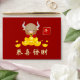 Festive Red | Gold Foil design Chinese Year of the Ox Traditional Chinese Red Money Pockets | Lucky Money Red Envelopes | Hong Bao | Hongbao. Chinese characters on the design is an Ox sign in the Chinese Zodiac and the most common Chinese New Year's Greeting. Matching cards and gifts available in the Chinese New Year / Year of the Ox Category of our store.