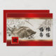 Happy Chinese New Year. Elegant Festive Red | Gold Foil design with a traditional Chinese painting of the Wild Boar | Wild Pig customisable Flat Greeting Card. Chinese characters on the front of the card are a Pig Sign in the Chinese Zodiac and one of the most common contemporary greeting for Chinese New Year literally translated as "a Happy New Year". Matching cards, traditional Chinese red Hongbao envelopes and gifts available in the Chinese New Year / Year of the Pig Category of our store.