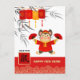Happy Chinese Year of the Rat. Festive Red | Gold Foil design Postcards with a Cute Little Mouse with Chinese Fans. Chinese character on front of the card is a Rat Sign in the Chinese Zodiac. Matching cards, traditional Chinese red envelopes and gifts available in the Chinese New Year / Year of the Rat Category of our store.