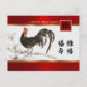 Happy Chinese New Year. Elegant Festive Red Gold Foil design Chinese Year of the Rooster Postcards with a traditional Chinese painting of the Rooster. Chinese character on front of the card are a Rooster Sign in the Chinese Zodiac and one of the most common contemporary greeting for Chinese New Year literary translated as "a Happy New Year". Matching cards, traditional Chinese red envelopes and gifts available in the Chinese New Year / Year of the Rooster Category of our store.
