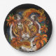 Show off your Chinese Zodiac animal sign with this beatiful plate! Digital art painting of a tiger with oriental dragon and surrounded by Tiger lilies.