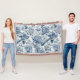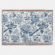 Chinoiserie Blue and White Peonies Flowers Birds Throw Blanket
