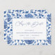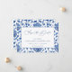 A smart blue and white chinoiserie pattern wedding Save The Date design. The pattern was handpainted by me in watercolors before being scanned into digital form. It is based on a pattern seen on antique ginger jars.