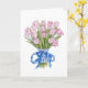 Chinoiserie Blue Bow Tulips Flowers Blank Greeting Card