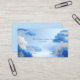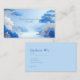 Define your brand with serene tranquility and ethereal elegance using this captivating business card. The design transports you to a stunning Chinoiserie landscape rendered in cool, icy blues, creating an atmosphere of majestic solitude. The background features hazy mountains and a low, misty plain, all beneath a soft, pale blue sky. The scene is lavishly framed by stylized cobalt blue flowers, lush white and gold foliage, and prominent blue pine trees with delicate gold outlines. A crisp metallic gold rectangular frame anchors the center, elegantly defining the clear space for your information against the soft, distant scenery. This artwork beautifully captures the refined beauty of a stylized, artistic garden, resulting in a unique and sophisticated brand statement that emphasizes peace and high-end design. This business card is ideally suited for a high-end travel agency promoting Asian-inspired scenic retreats, a luxury spa or wellness brand emphasizing tranquility and cool tones, or a fine art print seller focused on serene, atmospheric works. It would also perfectly suit a boutique candle maker whose products evoke crisp, clean scents, or a modern landscape architect specializing in stylized garden designs.