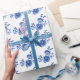 Chinoiserie Blue White Roses Floral Wrapping Paper