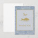 Serene and sophisticated, this Chinoiserie thank-you card captures the tranquility of a lily-covered pond in soft periwinkle and gold. The outer border features a delicate toile of lotus blossoms, lily pads, and dragonflies, framing a clean white center bordered in gold. At the heart of the design, a graceful gold koi swims beneath a hovering dragonfly — a timeless symbol of peace and renewal.