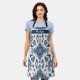 Chinoiserie Chic Navy Blue Flower Ornament Pattern Apron