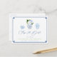Classic "Save The Date" postcard design featuring a handpainted blue and white ginger jar vases, the centre one of which is filled with watercolor flowers. I've set the template up for a wedding Save The Date but all of the text fields are fully flexible. Except for the flowers/ leaves, all watercolor elements were originally handpainted by me before being scanned into digital form and arranged into a repeating pattern. You can change the colour of the Greek Key border on the front into any colour you like by simply changing the background colour inside the design tool (click / tap to "personalise further" to access the design tool).