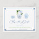 Chinoiserie Chic Navy Blue Green Save The Date Postcard