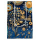 Maximalist seamless pattern gift bag with exotic birds, lush botanical details, and ornate foliage in rich blue, orange, and golden tones. Inspired by vintage tapestry and chinoiserie aesthetics, this intricate millefleur-style design is ideal for art lovers, maximalist decor enthusiasts, and those drawn to elegant, historical nature motifs.