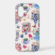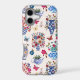 Elegant chinoiserie floral phone case featuring blue decorative vases, butterflies, and colorful botanical flowers. Feminine vintage inspired phone case for women. Stylish floral pattern perfect for girly aesthetic lovers. Original artwork by Caroline Bonne Müller