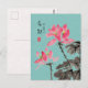 Chinoiserie Freehand Watercolor Floral Lotus Green Postcard