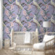 Chinoiserie Lavender Flowers & Egrets Pattern Wallpaper